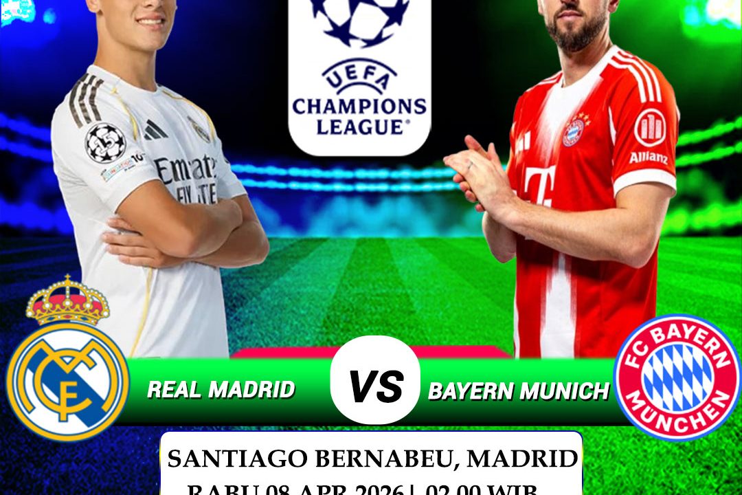 Kompetisi Liga Champions 2026Jadwal = Rabu, 08 April 2026 Pukul 03.00 WIBPasaran Handicap = Real Madrid (+1/4 / -1/4) Bayern...