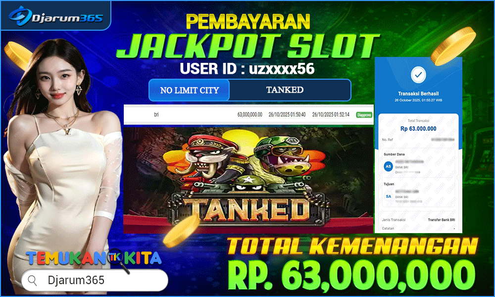 PEMBAYARAN KEMENANGAN RP.63,000,000 KEMENANGAN BERAPAPUN PASTI DIBAYAR – Kami dari pihak Djarum365 ingin juga menyampaikan selamat kepada User Id : uzxxxx56 mendapatkan kemenangan pada TANKED dengan Total kemenangan sebesar Rp.63,000,000 Slot Indonesia Terpercaya ini terus memberikan peluang besar bagi para pemain untuk meraih kemenangan serupa! Dengan kemenangan itu pihak DJARUM365 juga langsung melakukan pembayaran dan withdraw yang sudah di lakukan oleh member dalam waktu secepatnya tanpa harus menunggu lama !!