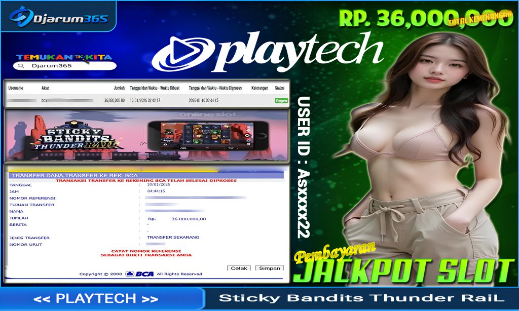PEMBAYARAN KEMENANGAN RP 36,000,000 KEMENANGAN BERAPAPUN PASTI DIBAYAR – Kami dari pihak Djarum365 ingin juga menyampaikan selamat kepada User Id : Asxxxx22 mendapatkan kemenangan pada Sticky Bandits Thunder RaiL Total kemenangan sebesar Rp 36,000,000 Slot Indonesia Terpercaya ini terus memberikan peluang besar bagi para pemain untuk meraih kemenangan serupa! Dengan kemenangan itu pihak DJARUM365 juga langsung melakukan pembayaran dan withdraw yang sudah di lakukan oleh member dalam waktu secepatnya tanpa harus menunggu lama !!
