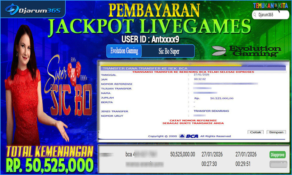 PEMBAYARAN KEMENANGAN RP.50,525,000 TANGGAL 27 JANUARI 2026