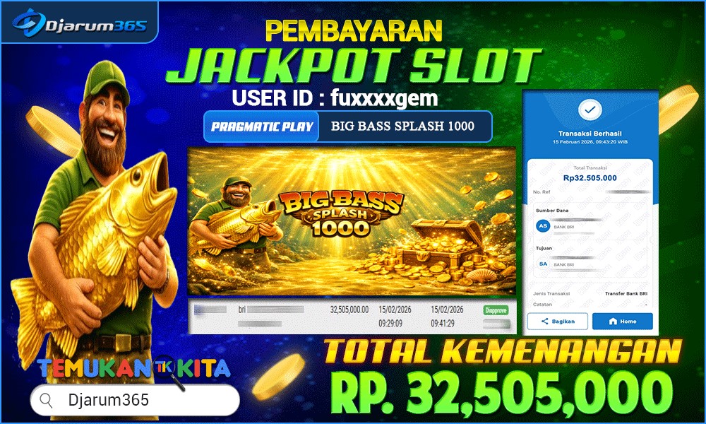 PEMBAYARAN KEMENANGAN RP 32,505,000 KEMENANGAN BERAPAPUN PASTI DIBAYAR – Kami dari pihak Djarum365 ingin juga menyampaikan selamat kepada User Id : fuxxxxgem mendapatkan kemenangan pada BIG BASS SPLASH 1000 Total kemenangan sebesar Rp 32,505,000 Slot Indonesia Terpercaya ini terus memberikan peluang besar bagi para pemain untuk meraih kemenangan serupa! Dengan kemenangan itu pihak DJARUM365 juga langsung melakukan pembayaran dan withdraw yang sudah di lakukan oleh member dalam waktu secepatnya tanpa harus menunggu lama !!