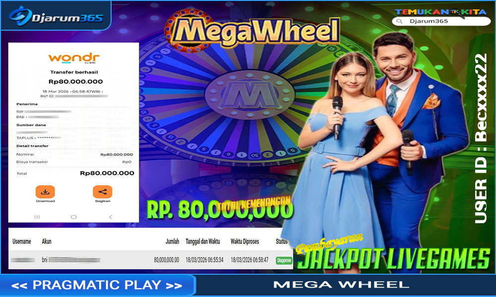 PEMBAYARAN KEMENANGAN RP 80,000,000 KEMENANGAN BERAPAPUN PASTI DIBAYAR – Kami dari pihak Djarum365 ingin juga menyampaikan selamat kepada User Id : Becxxxx22 mendapatkan kemenangan pada PP LIVE MEGA WHEEL Total kemenangan sebesar Rp 80,000,000 Slot Indonesia Terpercaya ini terus memberikan peluang besar bagi para pemain untuk meraih kemenangan serupa! Dengan kemenangan itu pihak DJARUM365 juga langsung melakukan pembayaran dan withdraw yang sudah di lakukan oleh member dalam waktu secepatnya tanpa harus menunggu lama !!