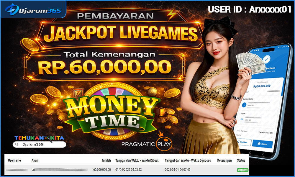 PEMBAYARAN KEMENANGAN RP 60,000,000 KEMENANGAN BERAPAPUN PASTI DIBAYAR – Kami dari pihak Djarum365 ingin juga menyampaikan selamat kepada User Id : Arxxxxx01 mendapatkan kemenangan pada MONEY TIME PRAGMATIC Total kemenangan sebesar Rp 60,000,000 Slot Indonesia Terpercaya ini terus memberikan peluang besar bagi para pemain untuk meraih kemenangan serupa! Dengan kemenangan itu pihak DJARUM365 juga langsung melakukan pembayaran dan withdraw yang sudah di lakukan oleh member dalam waktu secepatnya tanpa harus menunggu lama !!