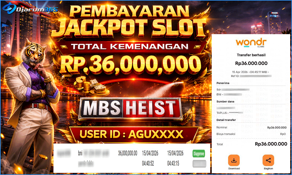 PEMBAYARAN KEMENANGAN RP 36,000,000 Slot Indonesia KEMENANGAN BERAPAPUN PASTI DIBAYAR – Kami dari pihak Djarum365 ingin juga menyampaikan selamat kepada User Id : AGUXXXX mendapatkan kemenangan pada MBS HEIST Total kemenangan sebesar Rp 36,000,000 Slot Indonesia Terpercaya ini terus memberikan peluang besar bagi para pemain untuk meraih kemenangan serupa! Dengan kemenangan itu pihak DJARUM365 juga langsung melakukan pembayaran dan withdraw yang sudah di lakukan oleh member dalam waktu secepatnya tanpa harus menunggu lama !!